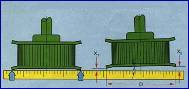 當開始準備測量帶輪平行度的時候,確定兩帶輪的擋邊厚度是一致的,把三角帶輪或同步帶輪按照中心面對面測量,比用最外面的做基準來確認更合適。在安裝帶輪時,有時候也會預先給帶輪一定量的偏移,使主、被動輪滿足平行度要求,以便皮帶在帶輪上更好的運行。