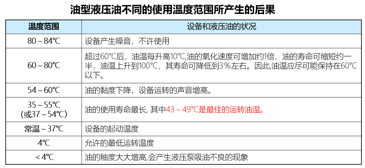 一、液壓油各溫度范圍的性質