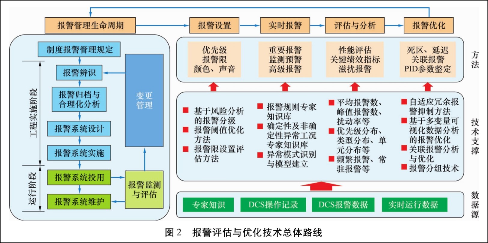 (1)報警評估與優化技術。從報警設置、儀表及控制系統優化等措施入手,減少現場無效報警干擾,提升報警響應效率,優化日常工藝操作。