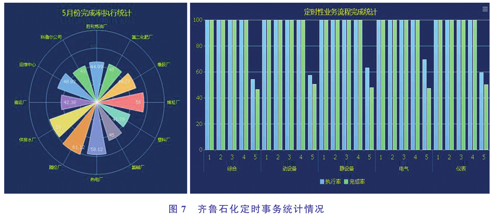齊魯石化監控統計定時事務的執行率、完成率,督促設備管理人員及時完成定期維護等預防性工作,降低設備故障率。其定時事務統計情況見圖7。