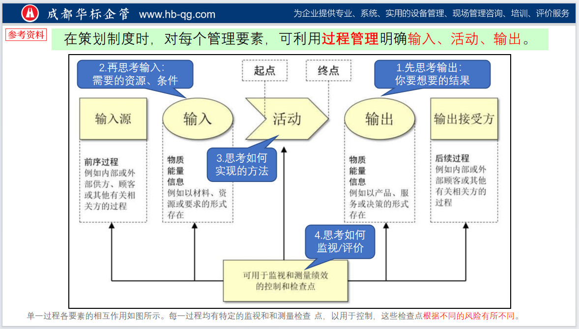 提示:企業的設備管理流程、制度、表單(含信息化單據),是企業設備管理者綜合策劃能力的體現,因此,企業參編人員的綜合能力,決定了策劃能力,策劃能力決定了輸出制度的質量。