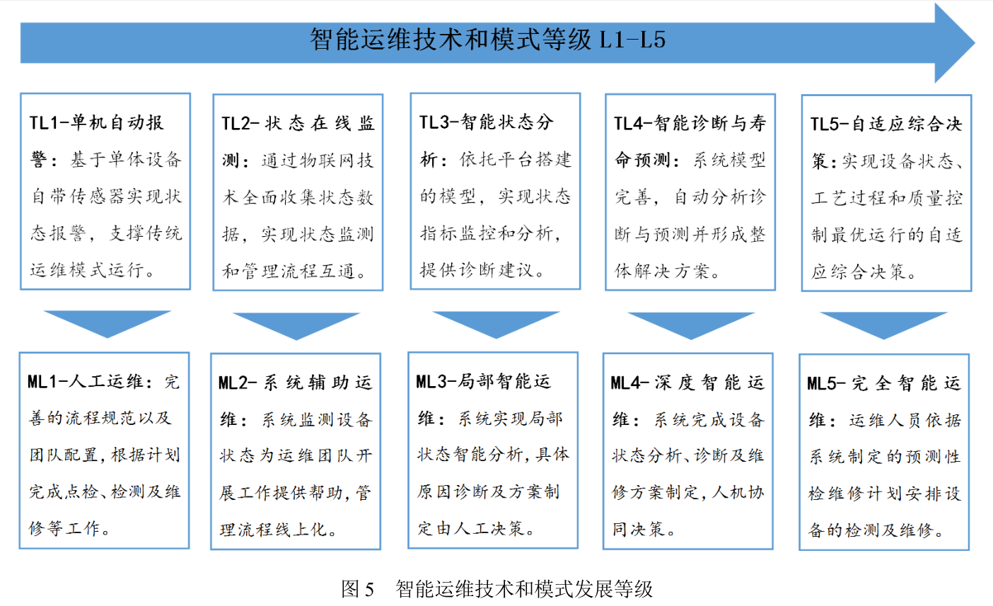 圖 5 智能運(yùn)維技術(shù)和模式發(fā)展等級(jí)