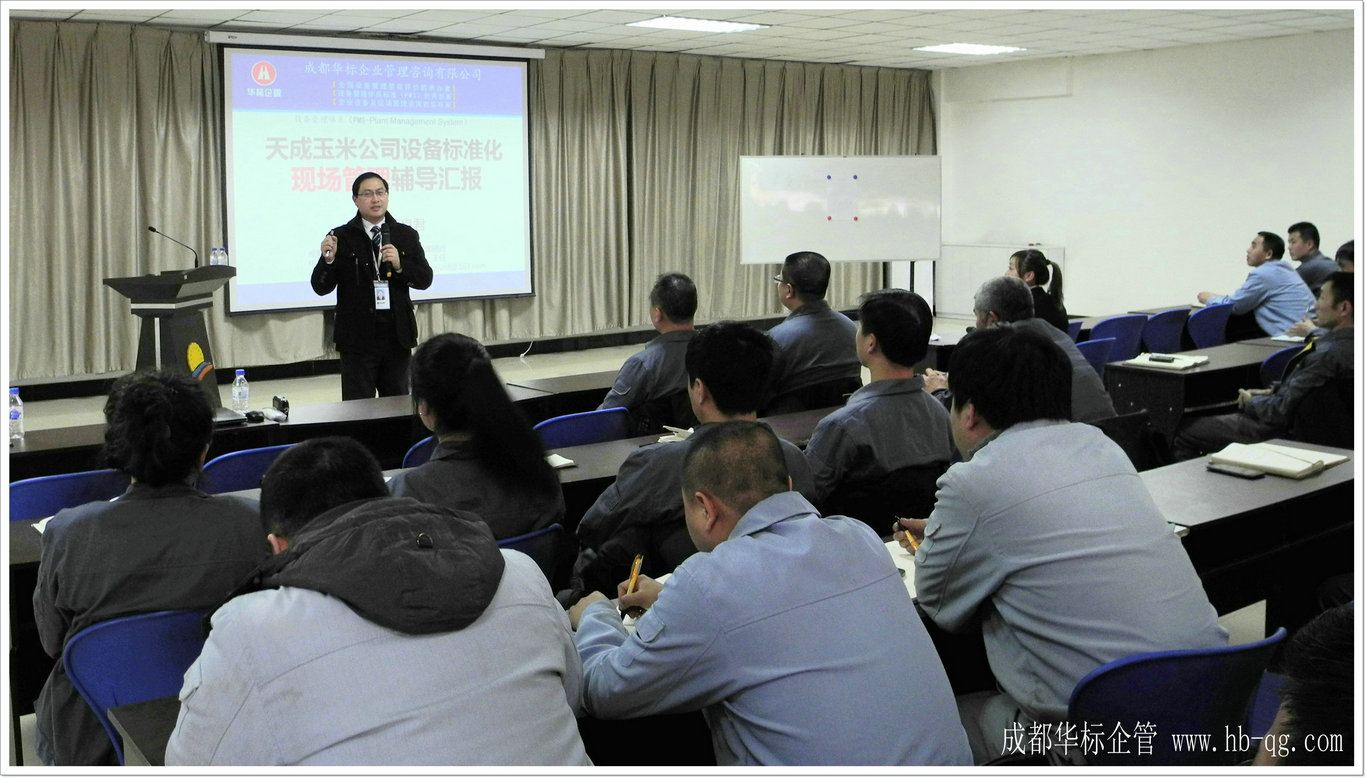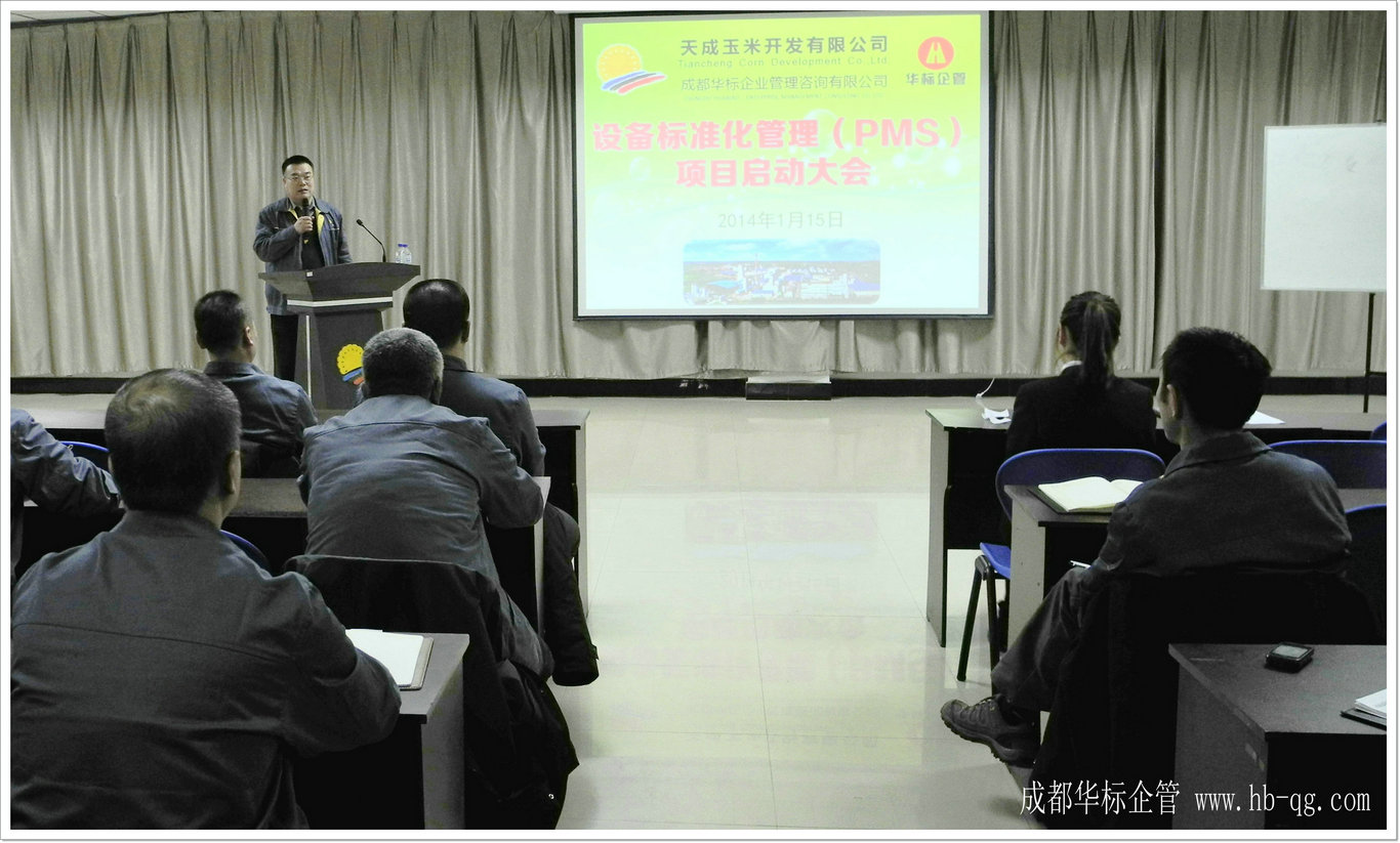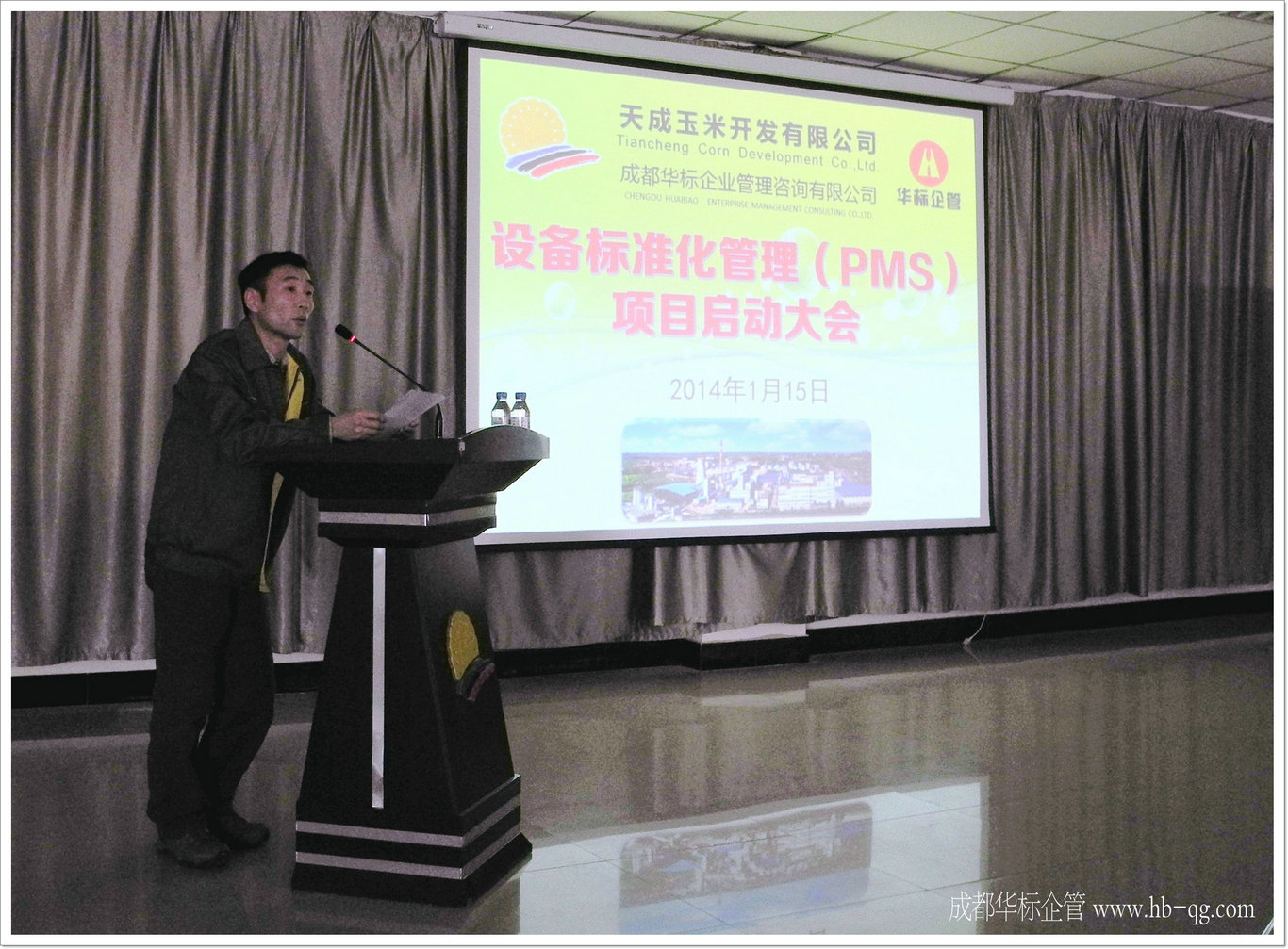 1月15日,在天成玉米開發(fā)有限公司推進(jìn)辦負(fù)責(zé)人楊柏松、辛麗艷的組織下,順利召開了PMS項(xiàng)目啟動大會。運(yùn)營中心經(jīng)理梁立軍作為項(xiàng)目經(jīng)理對組織架構(gòu)、項(xiàng)目目標(biāo)及項(xiàng)目總計(jì)劃進(jìn)行了闡述式發(fā)言。部門代表熱動車間主任李曉東就生產(chǎn)現(xiàn)場管理及設(shè)備管理的現(xiàn)狀與要求進(jìn)行了發(fā)言。項(xiàng)目經(jīng)理梁立軍帶領(lǐng)項(xiàng)目組成員對PMS項(xiàng)目推進(jìn)進(jìn)行集體承諾。中國設(shè)備管理協(xié)會設(shè)備管理評價(jià)中心秘書長、成都華標(biāo)企管首席專家黃集長作了《中國設(shè)備管理體系(PMS)概述》的理念導(dǎo)入培訓(xùn),解讀了中國設(shè)備管理體系(PMS)的來歷過程及主干內(nèi)容,闡述了設(shè)備作為基礎(chǔ)管理如何正確對待的管理觀點(diǎn)和理念。中國設(shè)備管理協(xié)會設(shè)備管理評價(jià)中心主任、成都華標(biāo)企管首席專家蔣良君作了本次指導(dǎo)調(diào)研情況匯到及改善建議PPT匯報(bào)。天成玉米開發(fā)有限公司總經(jīng)理王輝作了鏗鏘有力、擲地有聲的發(fā)言。本次成都華標(biāo)企管顧問駐扎到天成玉米開發(fā)有限公司,實(shí)施項(xiàng)目啟動準(zhǔn)備與指導(dǎo)同步進(jìn)行,實(shí)現(xiàn)了項(xiàng)目執(zhí)行的高效運(yùn)作。天成玉米有效地配合與互動,體現(xiàn)了企業(yè)管理人員很強(qiáng)的執(zhí)行能力和管理效率。組織框架的搭建和激勵(lì)機(jī)制的建立,在短時(shí)間內(nèi)就敲定和到位。天成玉米開發(fā)有限公司決策的快速和高效,超出了華標(biāo)企管顧問的想象。項(xiàng)目大幅度的激勵(lì)措施,顯露出天成玉米開發(fā)有限公司高層領(lǐng)導(dǎo)對項(xiàng)目的強(qiáng)烈支持與高度重視。