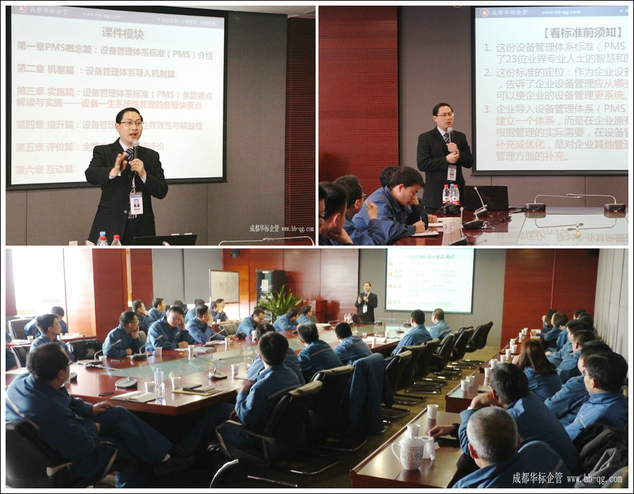 本次培訓,蔣良君老師主要從設備管理標準化建設(以下簡稱“PMS”)的組織策劃與企業開展的步驟、設備標準化建設各模塊的管控要點與技術標準建立的方法,到公司級設備管理的評價,都做了專業講解。蔣老師在授課時,結合了本次現場調研案例和大量的實例作為培訓的輔助案例,讓學員對設備管理標準化建設的方法有了更深入地理解。蔣良君此次培訓的主要內容有: