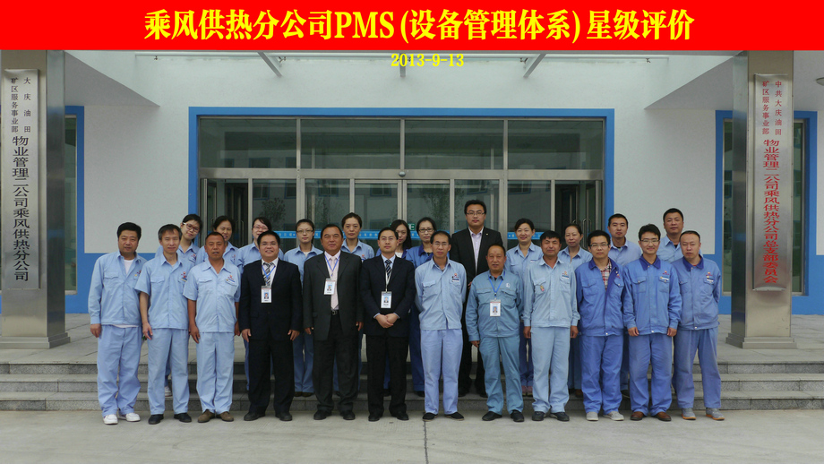 9月11日,在中國設備管理協會設備管理評價中心的組織下,評審專家中國設備管理協會設備管理評價中心秘書長黃集長、齊魯石化高工徐厚慶、鞍鋼礦業張先紀到大慶乘風供熱分公司,依據《設備管理體系-要求》PMS/T1-2012、《全國設備管理星級評價標準》PMS/T2-212,對大慶乘風供熱分公司進行了系統性評價。