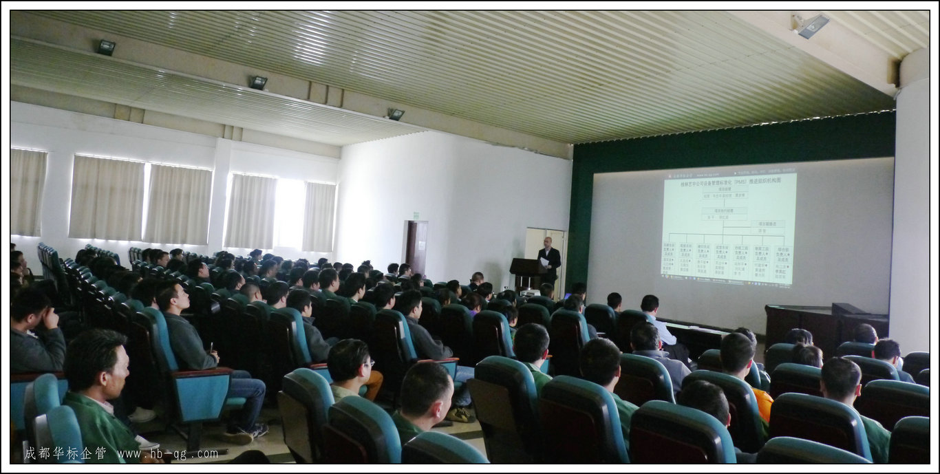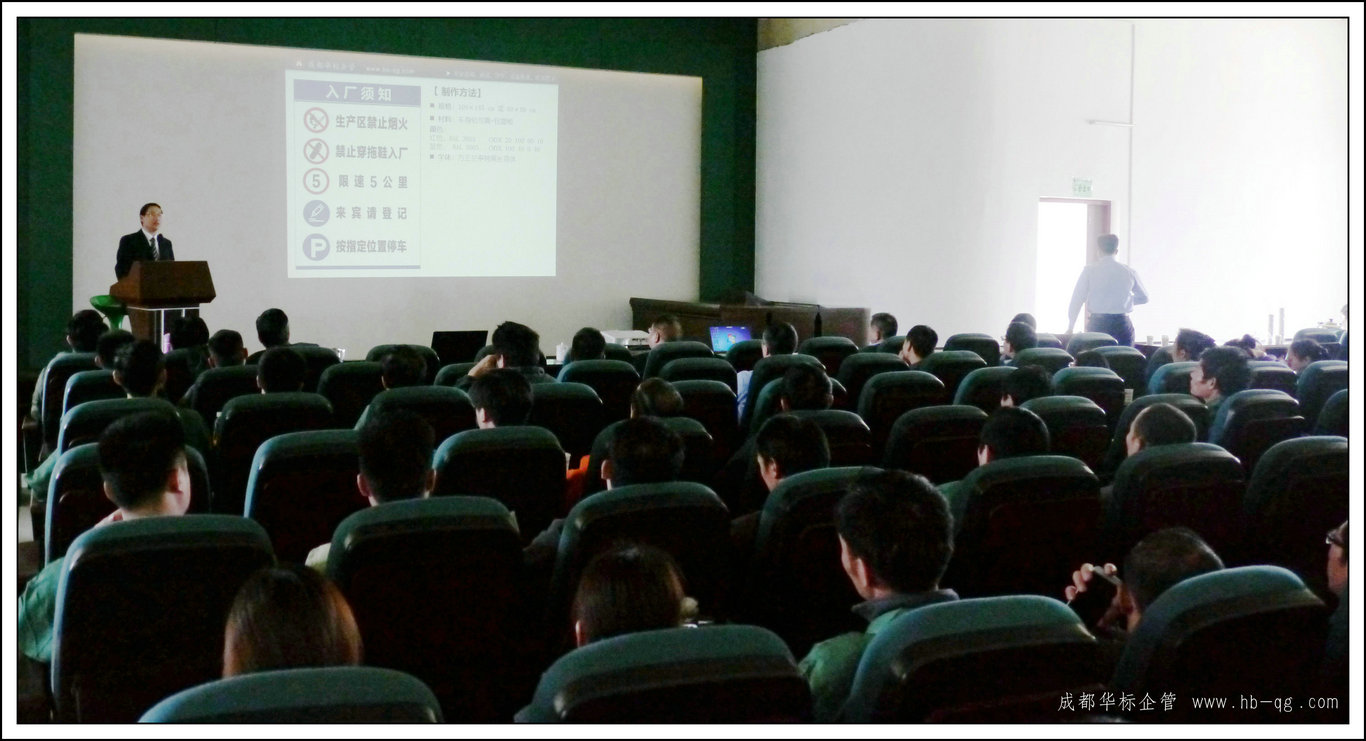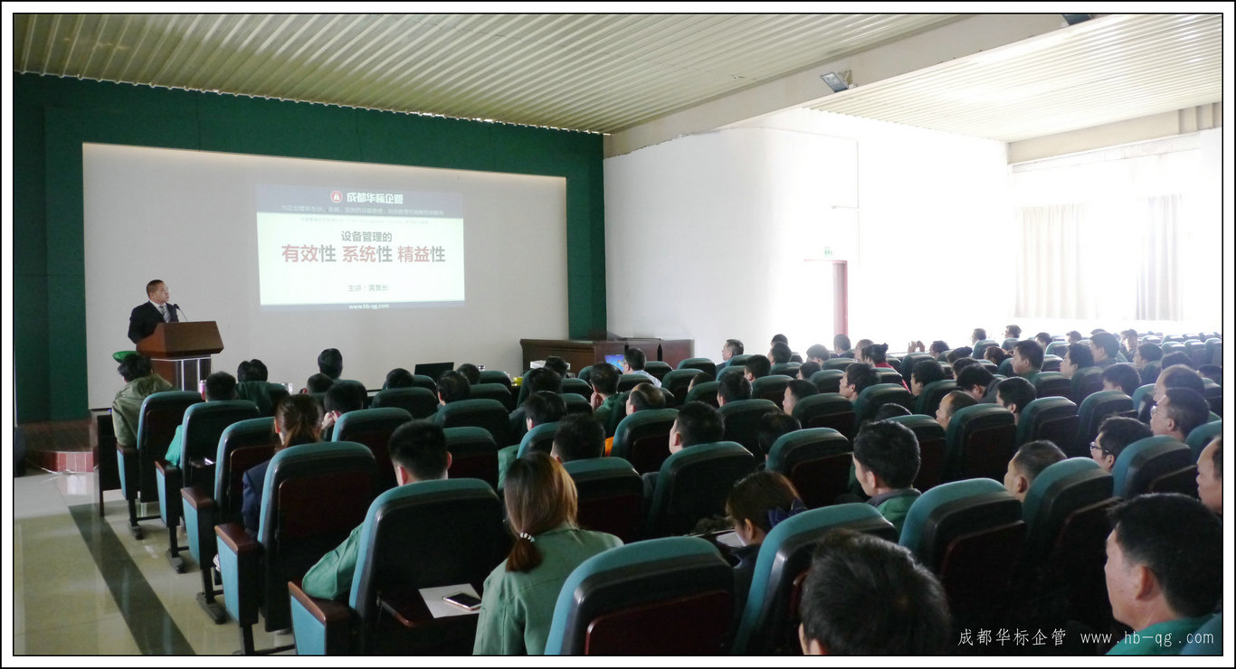 然后,蔣良君老師介紹了桂林藝宇公司一年的設備管理標準化推進主要工作及時間安排;接著,桂林藝宇公司 譚董事長對關于設備管理標準化項目的導入背景、目的做了介紹,并從企業經營高度及精益的專業角度闡述了精益生產與設備專業管理之間的關系,特別強調夯實設備專業管理,是精益生產等其他管理體系或模式的基礎。譚董說:“董事長最重要的職責就是“搬石頭”,誰阻礙項目的推進就把誰挪開。做設備管理不是一撮而就的事,必須務實的一步一個腳印做,設備管理這項工作做好了,我們的工作可事半功倍。工欲善其事必先利其器,小車在高速路上跑,若車況不好而拋錨,車是跑不起來的,設備管理也是同理。工欲善其事必先利其器,設備安穩運行,生產計劃等才有保障。公司的其他管理模塊相對健全,而設備專業管理則相對薄弱,因此,公司與設備管理專業的公司成都華標企管攜手合作,希望大家一起努力,把桂林藝宇公司的設備管理做專做強,為企業快速發展夯實基礎。并強調:在推進項目過程中,每個人都必須全力以赴,如果推進過程中有出現阻礙或不配合項目推行的,公司一定會采取措施。”