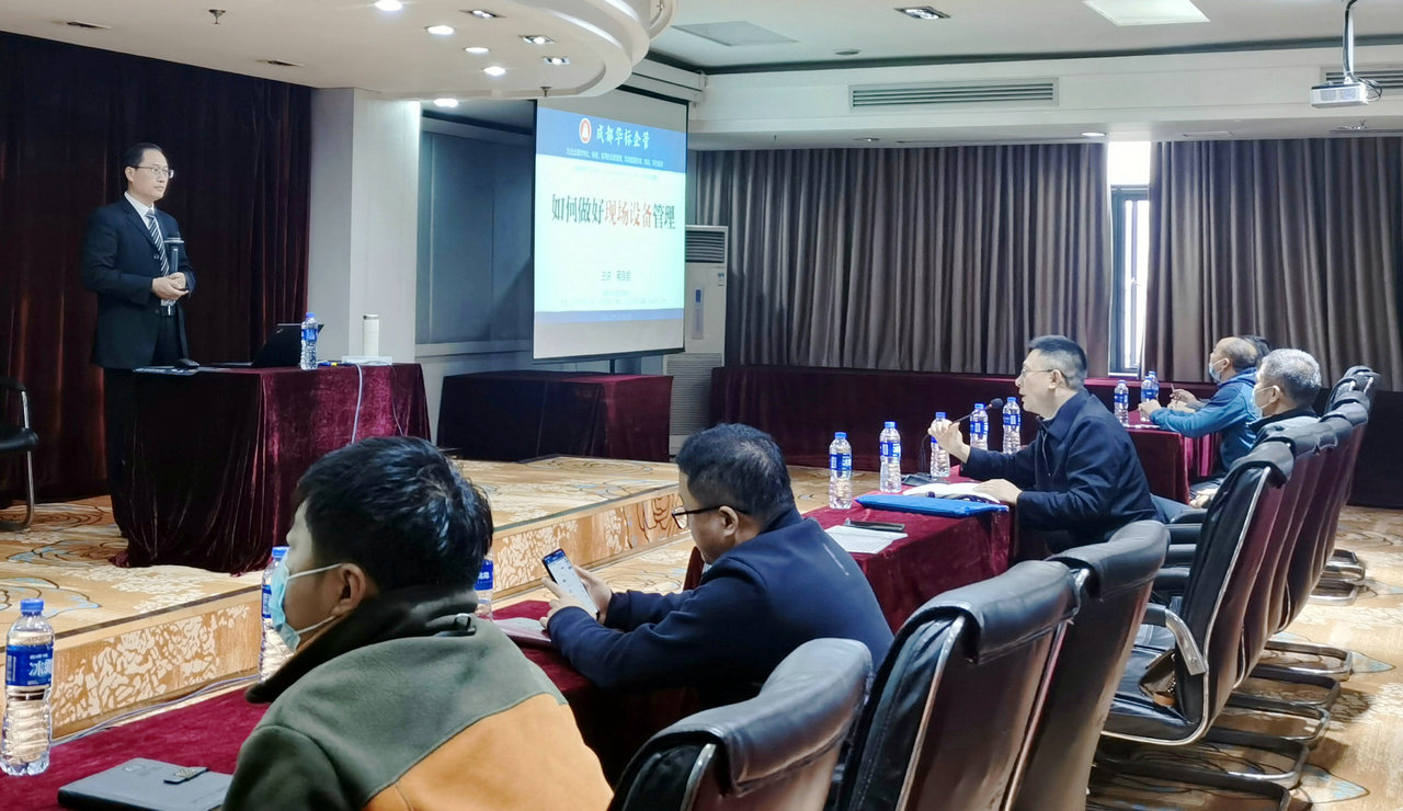 隨后,成都華標(biāo)企管的蔣良君老師就《如何做好現(xiàn)場設(shè)備管理》進(jìn)行了專題培訓(xùn)。本次課程主要內(nèi)容有:設(shè)備管理概述、現(xiàn)場管理、買對設(shè)備、規(guī)范使用、做好保養(yǎng)及潤滑、做好點檢、做好設(shè)備故障與檢修管理、做好專項管理、用好信息化、檢查促落實。