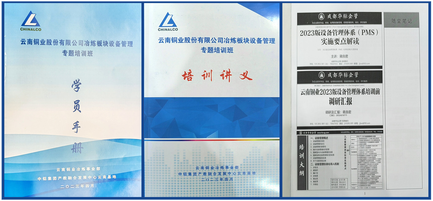 1)4月17日,在云南銅業冶煉事業部李經理的陪同下,蔣良君老師對冶煉事業部的設備管理管理體系要求、設備管理制度、專業技術指南,及西南銅業的精煉廠、電解廠、動力廠等現場和設備能源管理部的設備管理制度、規程/標準、記錄進行了研讀。蔣老師調研后編制了《云南銅業 2023版設備管理管理管理體系培訓前調研匯報》(138頁ppt)。簡報內容涵蓋了現場管理、設備管理執行、設備管理制度、設備技術標準、優化體系方面的建議。
